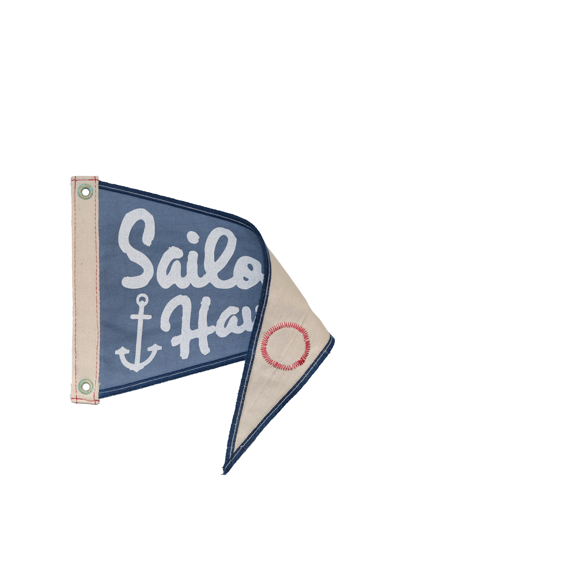 Handcrafted from 10oz duck canvas with a muslin backing. Each flag is lightly waxed for a vintage, timeworn look and finished with brass grommets aged in the waters of the Atlantic.